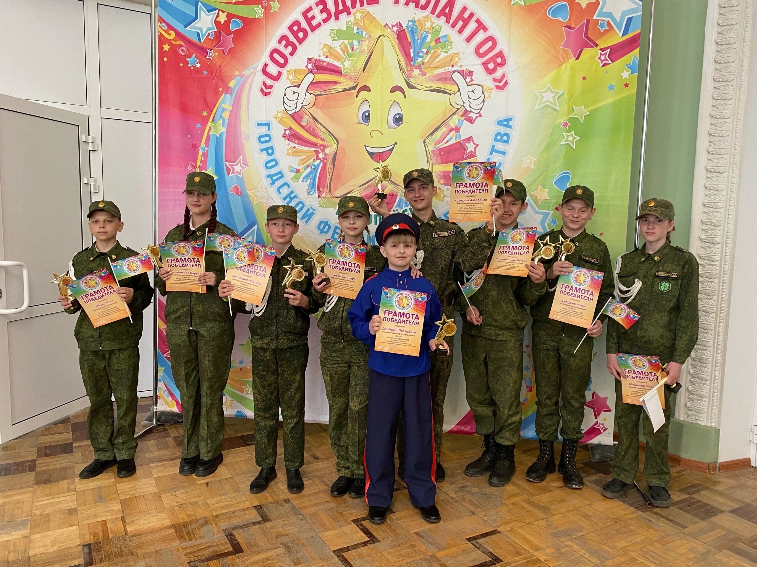 Особого внимания заслуживают ребята из Клуб патриотического воспитания "РЕГИОН 74" (рук. Анастасия Мельникова), а также Дмитрий Посадских из вокального коллектива эстрадной песни «Легато» (рук. Илья Гуль), которых наградили Дипломами Лауреата городского фестиваля «Созвездие талантов»!